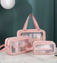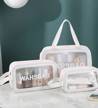 Keep your beauty essentials organized and stylish with our transparent three-piece makeup and wash bag set. The clear design allows you to easily see and access your items, while the durable and water-resistant material keeps your belongings safe and dry. Perfect for travel or everyday use, this set is a must-have for any beauty enthusiast.
